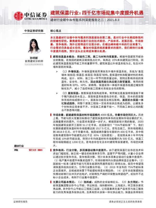 【中信证券】【20210803】建材行业碳中和专题系列深度报告之二:建筑保温行业,四千亿市场迎集中度提升机遇-42页 行业研究