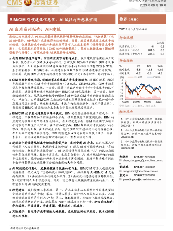 【海通证券】【20230816】AI应用系列报告:AI+建筑:BIM CIM引领建筑信息化,AI赋能打开想象空间-34页 行业研究