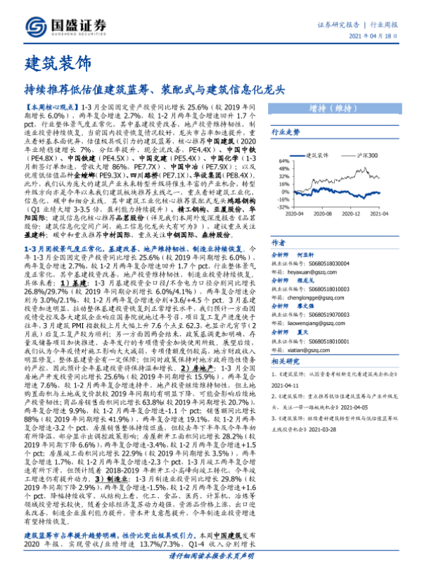 【国盛证券】【20210418】建筑装饰:持续推荐低估值建筑蓝筹、装配式与建筑信息化龙头-19页 行业研究
