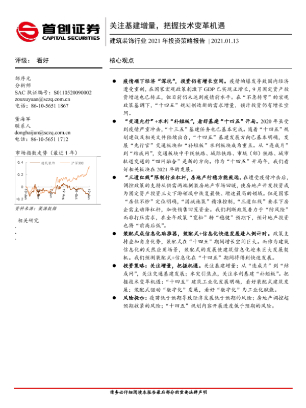 【首创证券】【20210113】建筑装饰行业2021年投资策略报告:关注基建增量,把握技术变革机遇-48页 行业研究