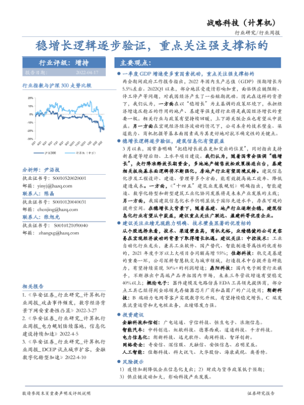【华安证券】【20220417】20220417-华安证券-战略科技(计算机)行业周报:稳增长逻辑逐步验证,重点关注强支撑标的-15页 行业研究