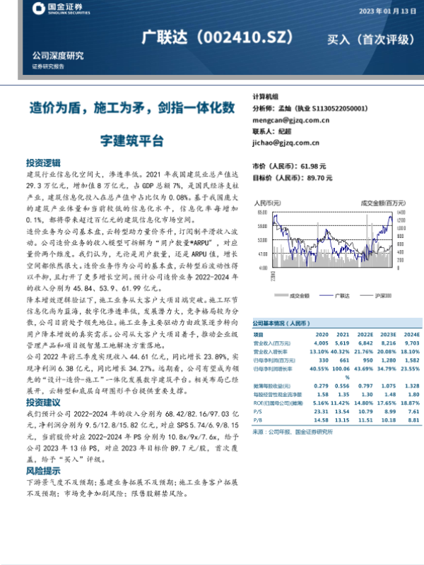 【国金证券】【20230113】国金证券-广联达-造价为盾,施工为矛,剑指一体化数字建筑平台-30页 行业研究