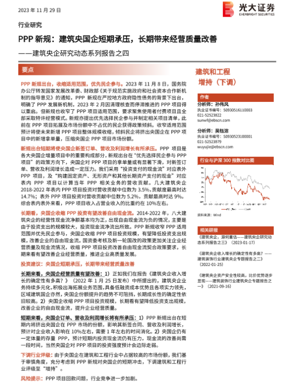 【光大证券】【20231129】PPP新规:建筑央国企短期承压,长期带来经营质量改善-11页 行业研究