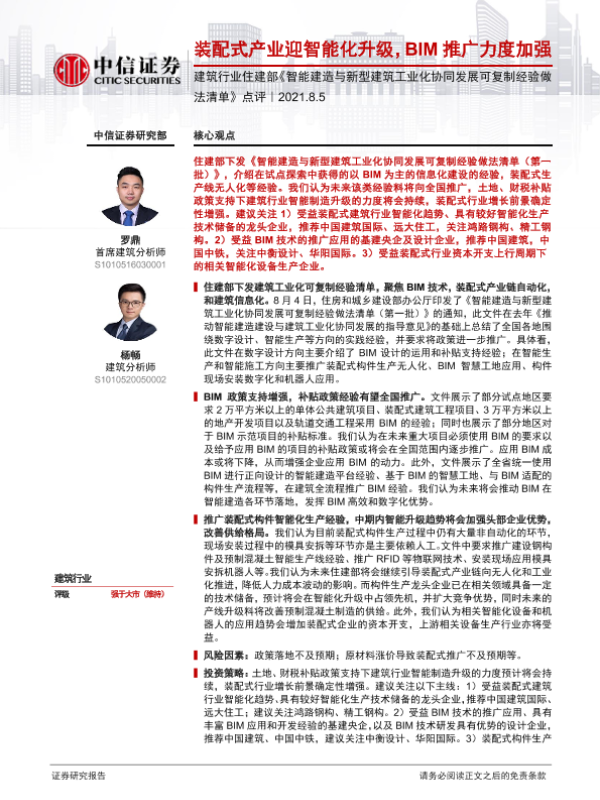 【中信证券】【20210805】建筑行业住建部《智能建造与新型建筑工业化协同发展可复制经验做法清单》点评-3页 行业研究