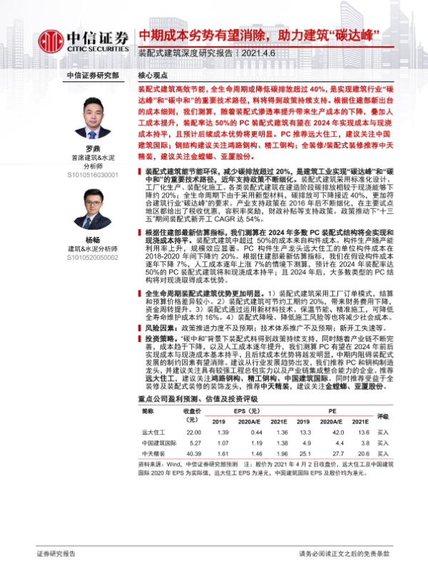 【中信证券】【20210406】装配式建筑深度研究报告:中期成本劣势有望消除,助力建筑“碳达峰”-22页 行业研究