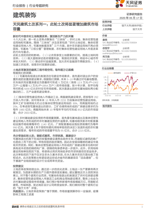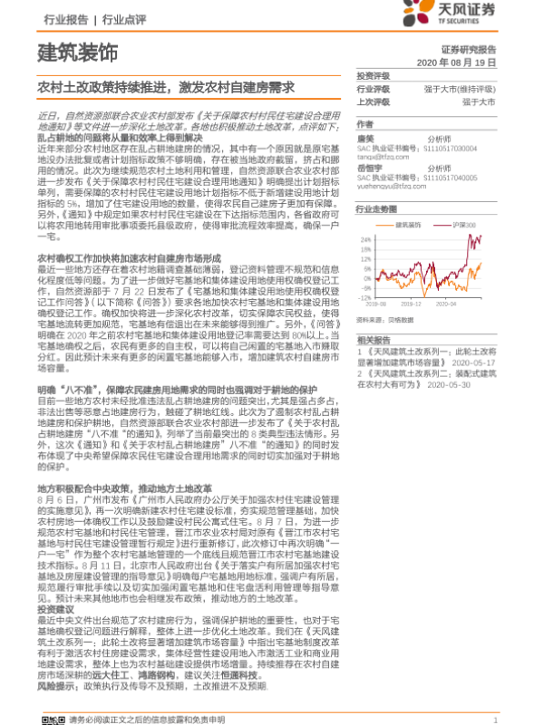 【天风证券】【20200819】建筑装饰:农村土改政策持续推进,激发农村自建房需求-2页 行业研究