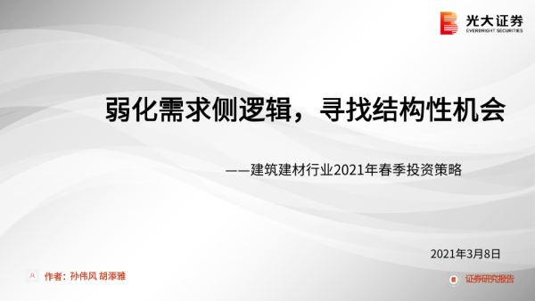 【光大证券】【20210308】建筑建材行业2021年春季投资策略:弱化需求侧逻辑,寻找结构性机会-35页 行业研究