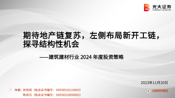 【光大证券】【20231120】建筑建材行业2024年度投资策略:期待地产链复苏,左侧布局新开工链,探寻结构性机会-79页 行业研究