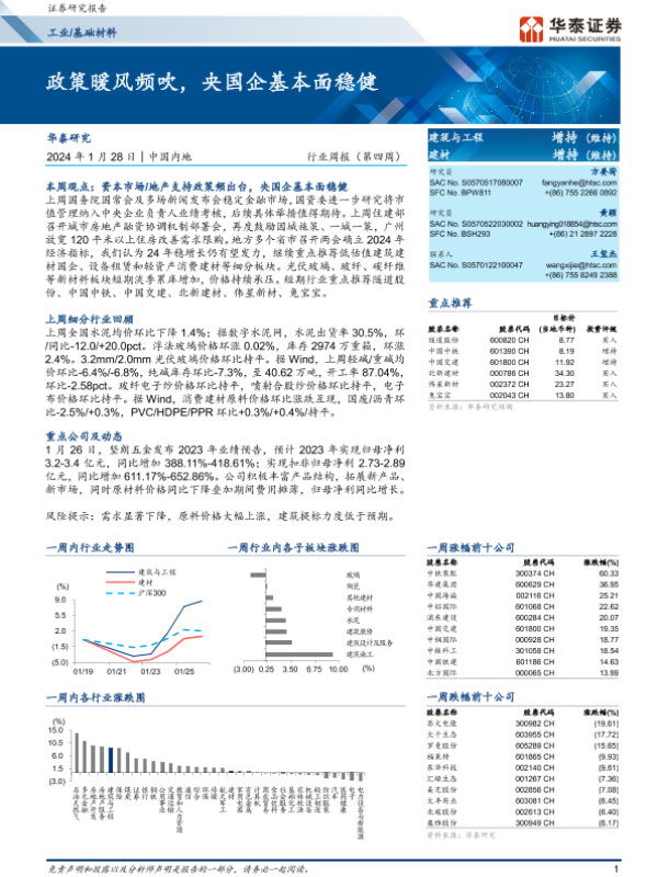 【华泰证券】【20240128】工业基础材料行业周报(第四周):政策暖风频吹,央国企基本面稳健-14页 行业研究