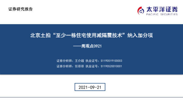 【太平洋证券】【20210921】北京土拍“至少一栋住宅使用减隔震技术”纳入加分项-41页 行业研究