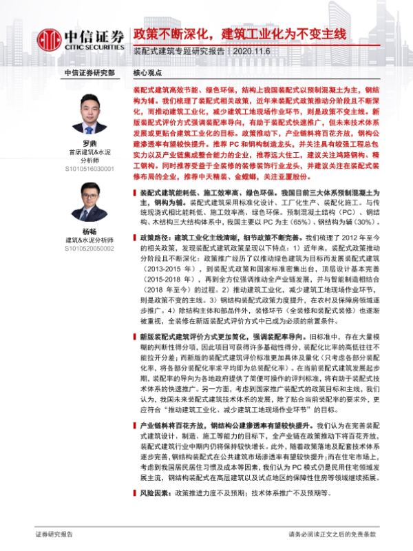 【中信证券】【20201106】装配式建筑专题研究报告:政策不断深化,建筑工业化为不变主线-29页 行业研究