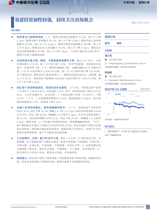 【银河证券】【20241209】建筑行业:基建投资韧性较强,持续关注出海机会-17页 行业研究