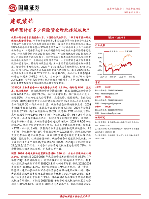 【国盛证券】【202512】明年预计有多少保险资金增配建筑板块-11页 证券期货研究报告