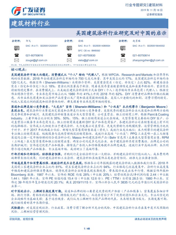 【广发证券】【20191118】美国建筑涂料行业研究及对中国的启示-48页 行业研究