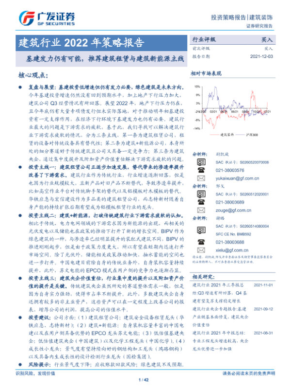 【广发证券】【20211203】建筑行业2022年策略报告:基建发力仍有可能,推荐建筑租赁与建筑新能源主线-42页 行业研究