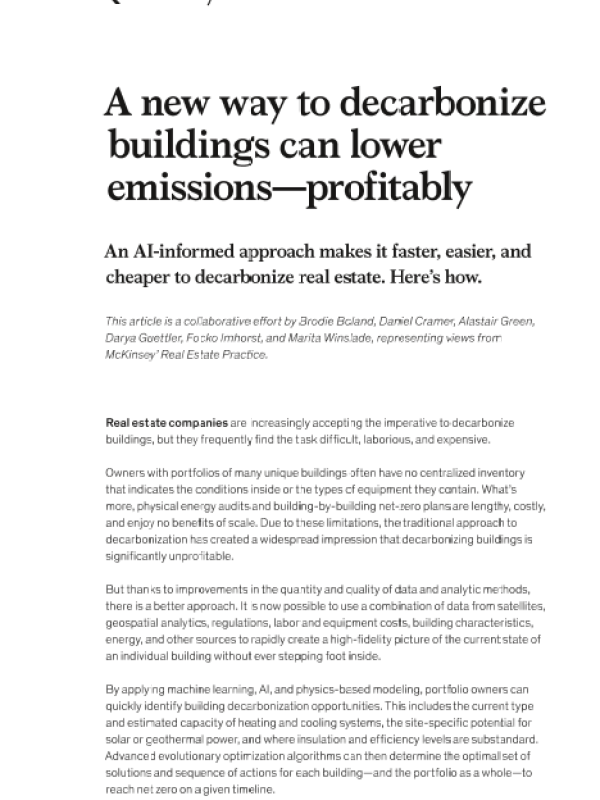 【McKinsey & Company】【2023】建筑物脱碳的新方法可以降低排放并有利可图-8页 行业研究