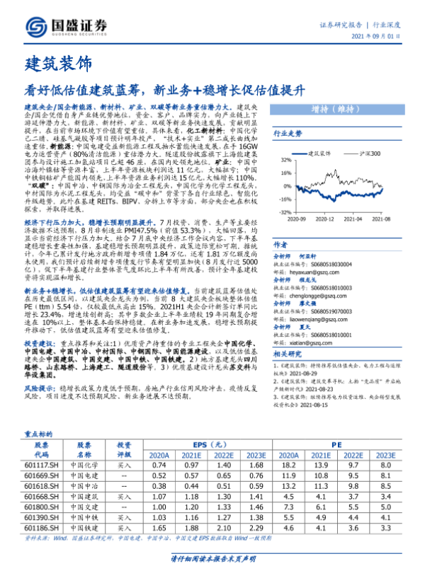 【国盛证券】【20210901】建筑装饰行业:看好低估值建筑蓝筹,新业务+稳增长促估值提升-23页 行业研究