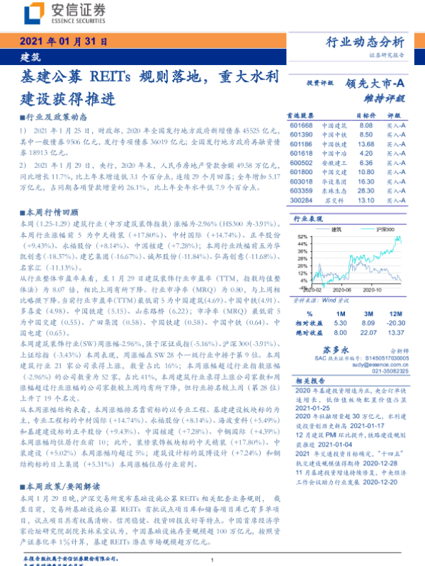 【安信证券】【20210131】建筑行业动态分析:基建公募REITs规则落地,重大水利建设获得推进-11页 行业研究