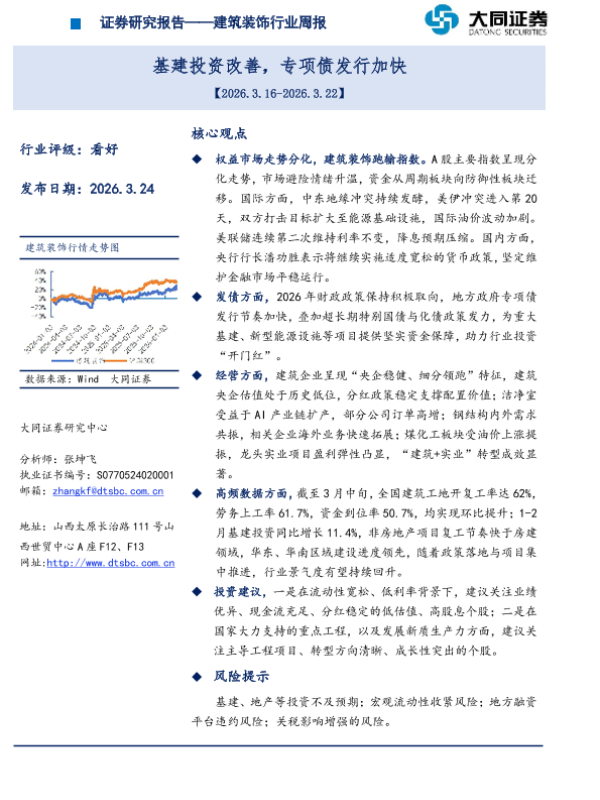 【大同证券】【202603】基建投资改善,专项债发行加快-14页 证券期货研究报告