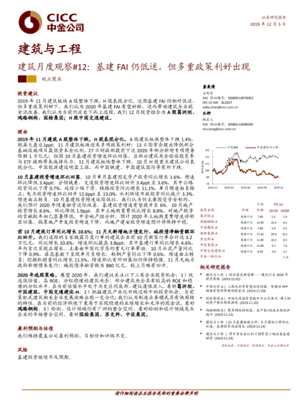 【中金公司】【20191205】建筑月度观察#12:基建FAI仍低迷,但多重政策利好出现-21页 行业研究