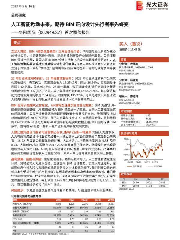 【光大证券】【20230516】20230516-光大证券-华阳国际-002949.SZ-首次覆盖报告:人工智能掀动未来,期待BIM正向设计先行者率先蝶变-25页 行业研究