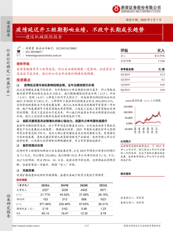 【浙商证券】【20200207】建设机械跟踪报告:疫情延迟开工短期影响业绩,不改中长期成长趋势-15页 行业研究