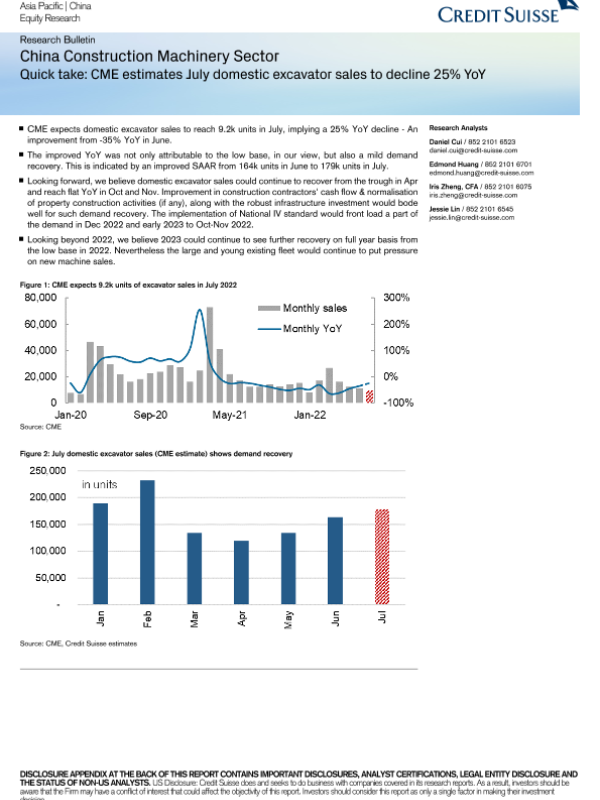 【Credit Suisse】【20220725】中国建设机械行业研究报告-5页 行业研究