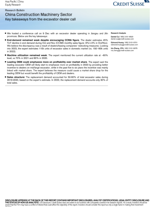 【Credit Suisse】【20221209】中国建设机械行业部门-4页 行业研究