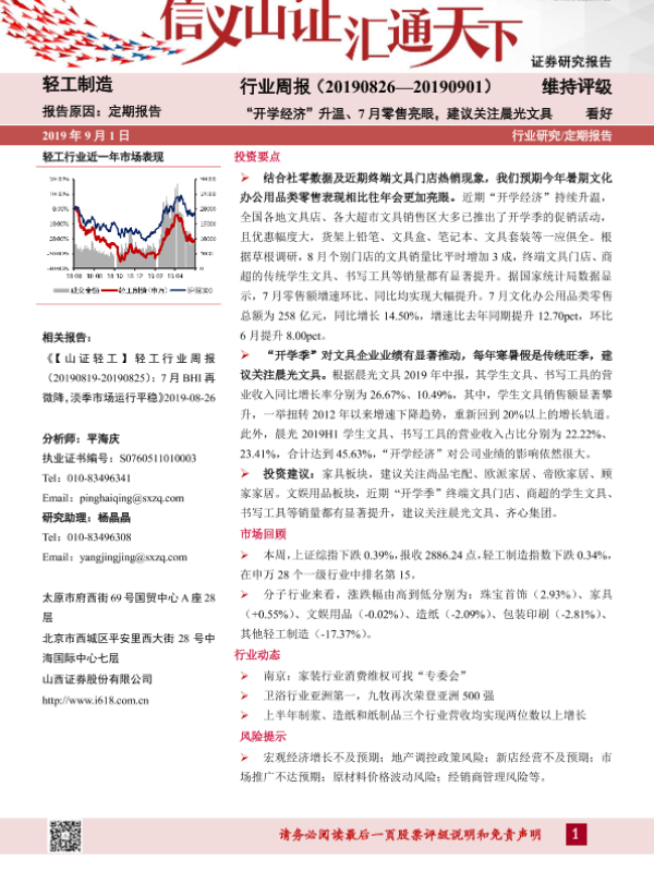 【山西证券】【20190901】轻工制造行业周报:“开学经济”升温、7月零售亮眼,建议关注晨光文具-14页 行业研究
