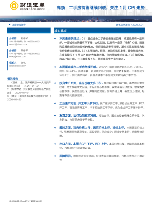 【财通证券】【202601】高频|二手房销售继续回暖,关注1月 CPI走势-14页 证券期货研究报告