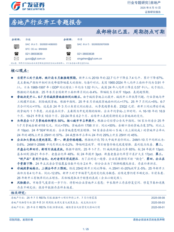 【广发证券】【20250810】房地产行业开工专题报告:底部特征已显,周期拐点可期-25页 行业研究