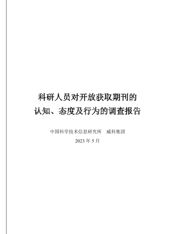 【中国科学技术信息研究所】【202305】2023科研人员对开放获取期刊的认知、态度及行为的调查报告-55页 市场调研