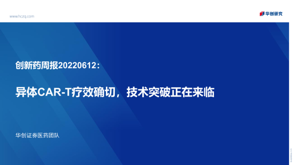 【华创证券】【20220612】创新药周报:异体CAR-T疗效确切,技术突破正在来临-35页 行业研究