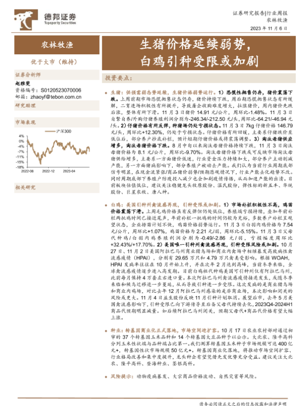 【德邦证券】【20231106】20231106-德邦证券-农林牧渔行业周报:生猪价格延续弱势,白鸡引种受限或加剧-17页 行业研究