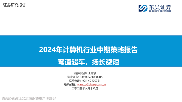 【东吴证券】【20240618】2024年计算机行业中期策略报告:弯道超车,扬长避短-27页 行业研究