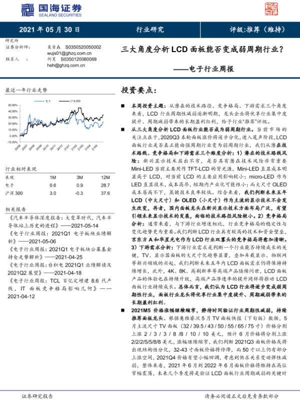 【国海证券】【20210530】20210530-国海证券-电子行业周报:三大角度分析LCD面板能否变成弱周期行业?-21页 行业研究
