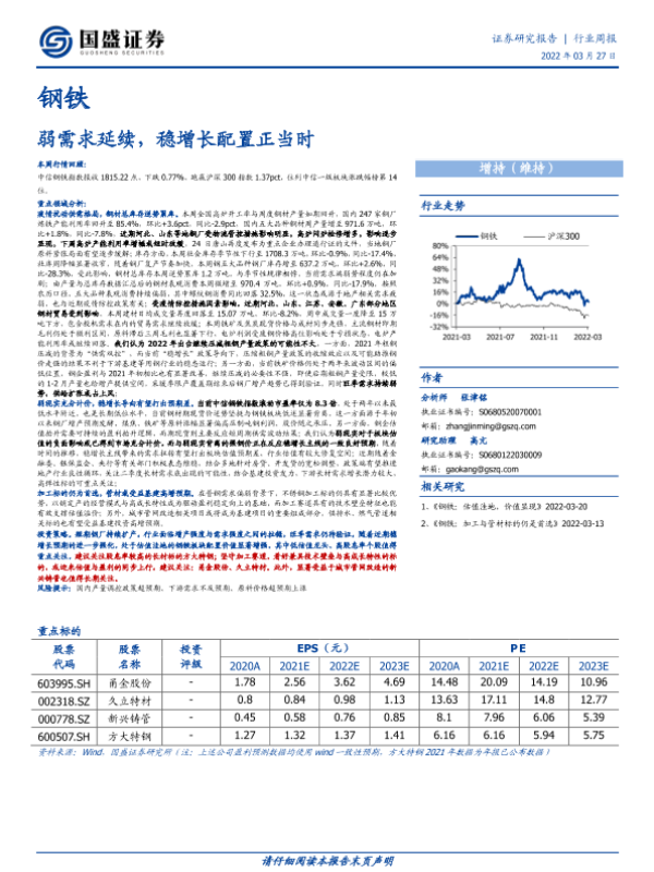 【国盛证券】【20220327】20220327-国盛证券-钢铁行业周报:弱需求延续,稳增长配置正当时-15页 行业研究