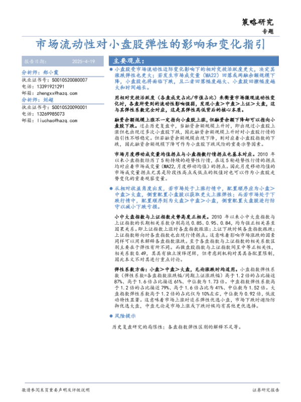 【华安证券】【20250419】市场流动性对小盘股弹性的影响和变化指引-25页 证券期货研究报告