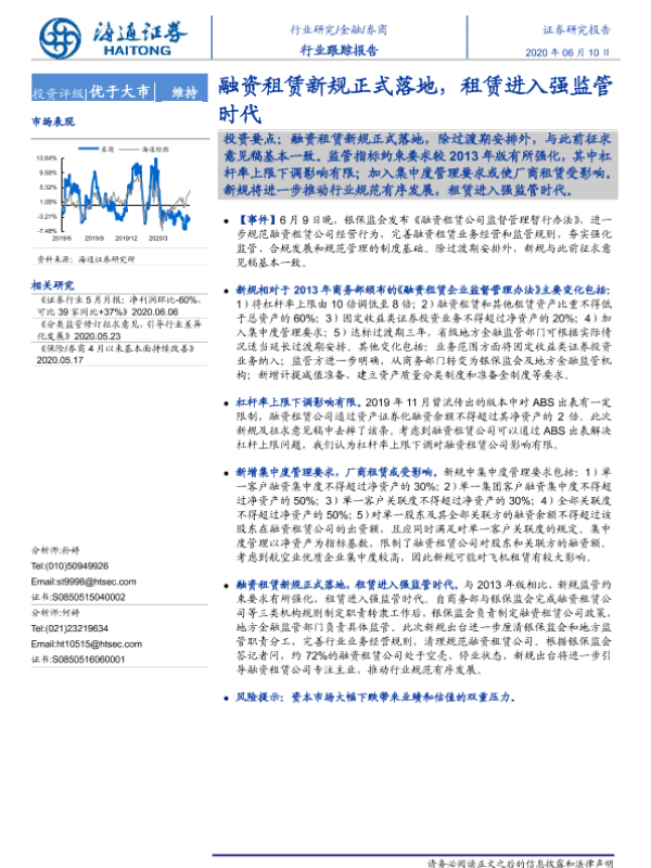【海通证券】【20200610】券商行业跟踪报告:融资租赁新规正式落地,租赁进入强监管时代-3页 行业研究