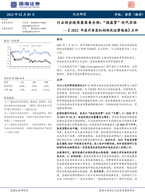 【国海证券】【20220205】2022年医疗美容机构规范运营指南点评:行业协会视角看医美合规-8页 行业研究