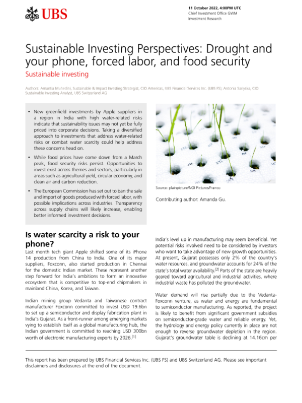 【UBS Financial Services Inc. 和 UBS Switzerland AG】【20221011】干旱与你的手机、强迫劳动和粮食安全-6页 行业研究