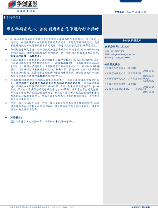 【华创证券】【20230807】【专题报告】形态学研究之八:如何利用形态信号进行行业择时-27页 行业研究