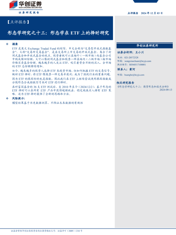 【华创证券】【20241203】形态学研究之十三:形态学在ETF上的择时研究-10页 行业研究
