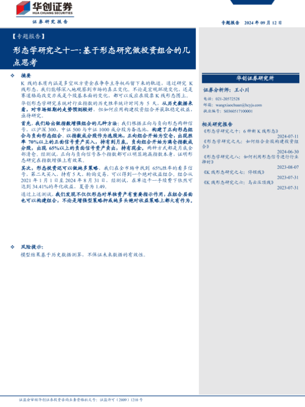 【华创证券】【20240912】形态学研究之十一:基于形态研究做投资组合的几点思考-20页 行业研究