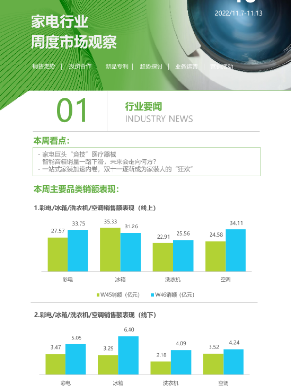 【艾瑞咨询】【20221113】2022年第46周:家电行业周度市场观察-8页 市场调研