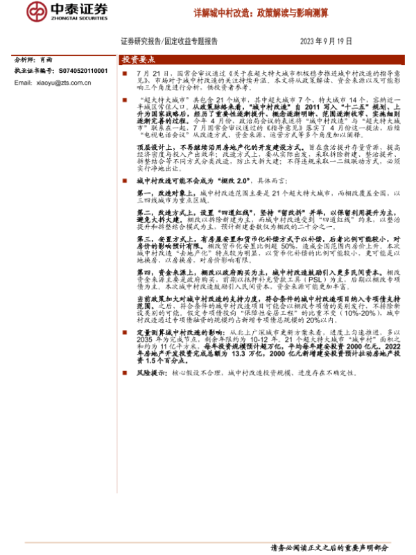 【中泰证券】【20230919】详解城中村改造:政策解读与影响测算-21页 行业研究
