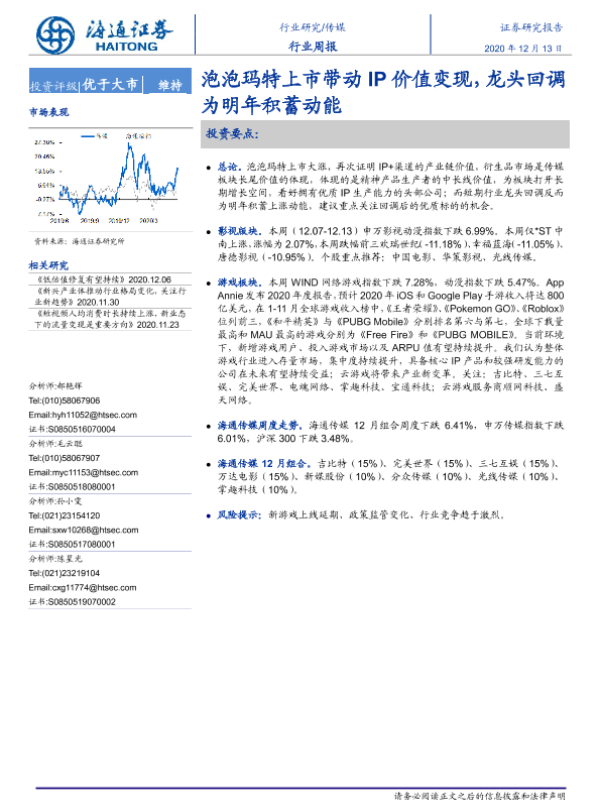 【海通证券】【20201213】20201213-海通证券-传媒行业周报:泡泡玛特上市带动IP价值变现,龙头回调为明年积蓄动能-10页 行业研究