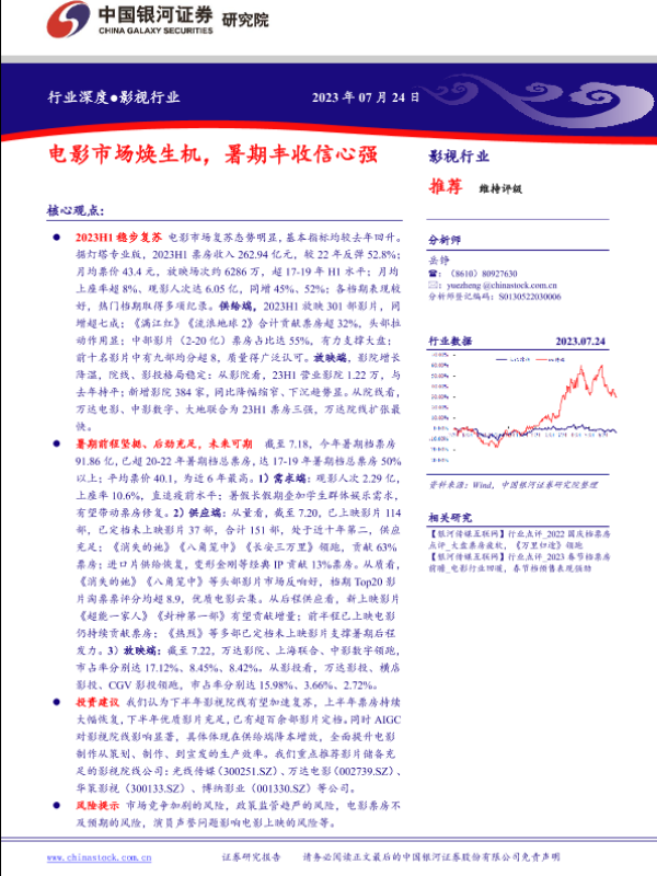 【银河证券】【20230724】影视行业:电影市场焕生机,暑期丰收信心强-20页 行业研究