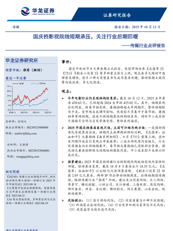 【华龙证券】【202510】国庆档影视院线短期承压,关注行业后期回暖-7页 证券期货研究报告