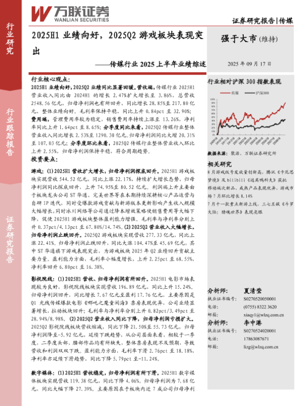 【万联证券】【202509】2025H1业绩向好,2025Q2游戏板块表现突出-13页 证券期货研究报告